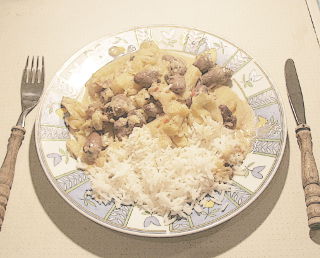 Tipp: Praktisch bei diesem Gericht ist, dass der Weißkohl und die Hühnerherzen beide angebraten werden müssen und die gleiche Kochzeit haben. Wenn man keinen Sellerie da hat, geht das auch mit Lauch oder mit Möhren.