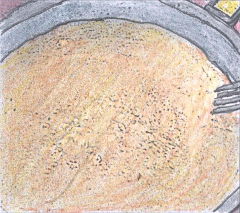 Derweil die Hühnerbeine aus dem Fett nehmen und auf einem Teller stapeln. Das Fett von dem Blech in eine Pfanne schütten, etwas kochendes Wasser und etwas Sahne zugeben. Mehl mit lauwarmen Wasser anrühren, in die Sauce einrühren und das Ganze aufkochen.