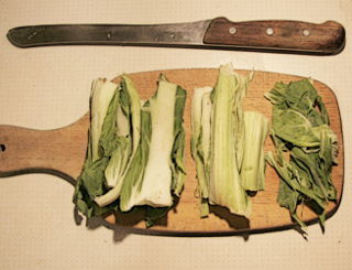Derweil die Blumenkohlstängel vom Blumlenkohlkopf abmachen, waschen, versäubern und die Blattreste entfernen und diese beiseite legen. Die Stängel noch einmal durchschneiden und in den Topf geben. Weitere 40 Min. köcheln lassen.